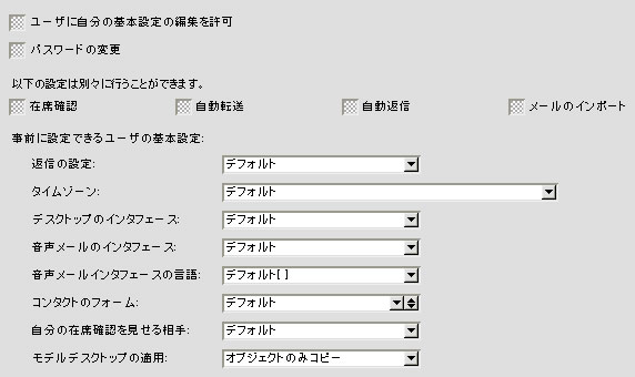 このグループのユーザは、自分の[基本設定]フォームで在席確認を見せる相手を設定できます。