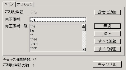 検出された不明な単語を[修正候補]フィールドの単語に置き換えます。