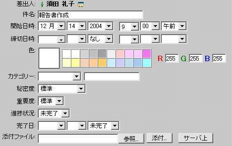 L3006_07.jpgカレンダーを月表示、週表示、または日表示にするには、メニューの該当するボタンをクリックしてください。日表示では、時間帯も表示されます。「作業」および終日の「予定」は、日表示の最上部に表示されます。