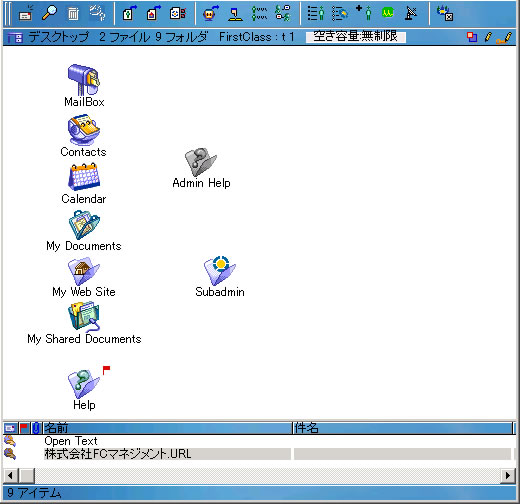 コンテナの内容を表示するFirstClassウィンドウは、通常次のものから構成されます。