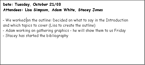 The group collects most of their information from the Internet and books. As they collect the information, they make notes in FirstClass documents, and then share their notes at the next meeting.