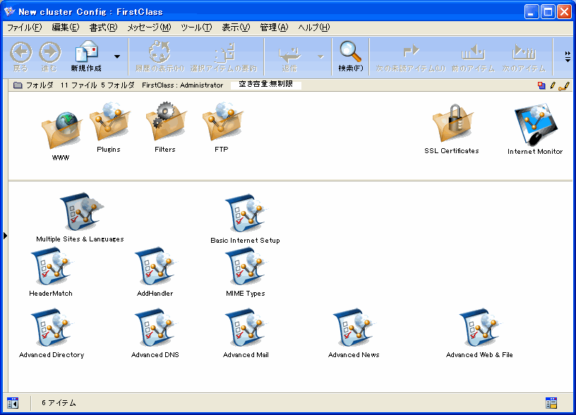 新しく作られたフォルダ名は、ゲートウェイ(サービス)名の後に「Config」の文字が付いた名前になります。この例では、New cluster Configです。このフォルダ内には、元の[Internet Services]フォルダ内にあるのと同じフォルダとフォームが作られています。