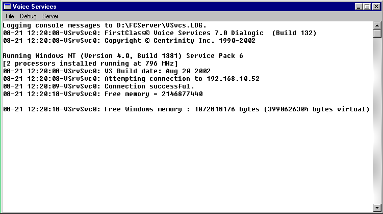 When you start Voice Services with all debug levels set to 0 (default configuration), you will see something like this:
